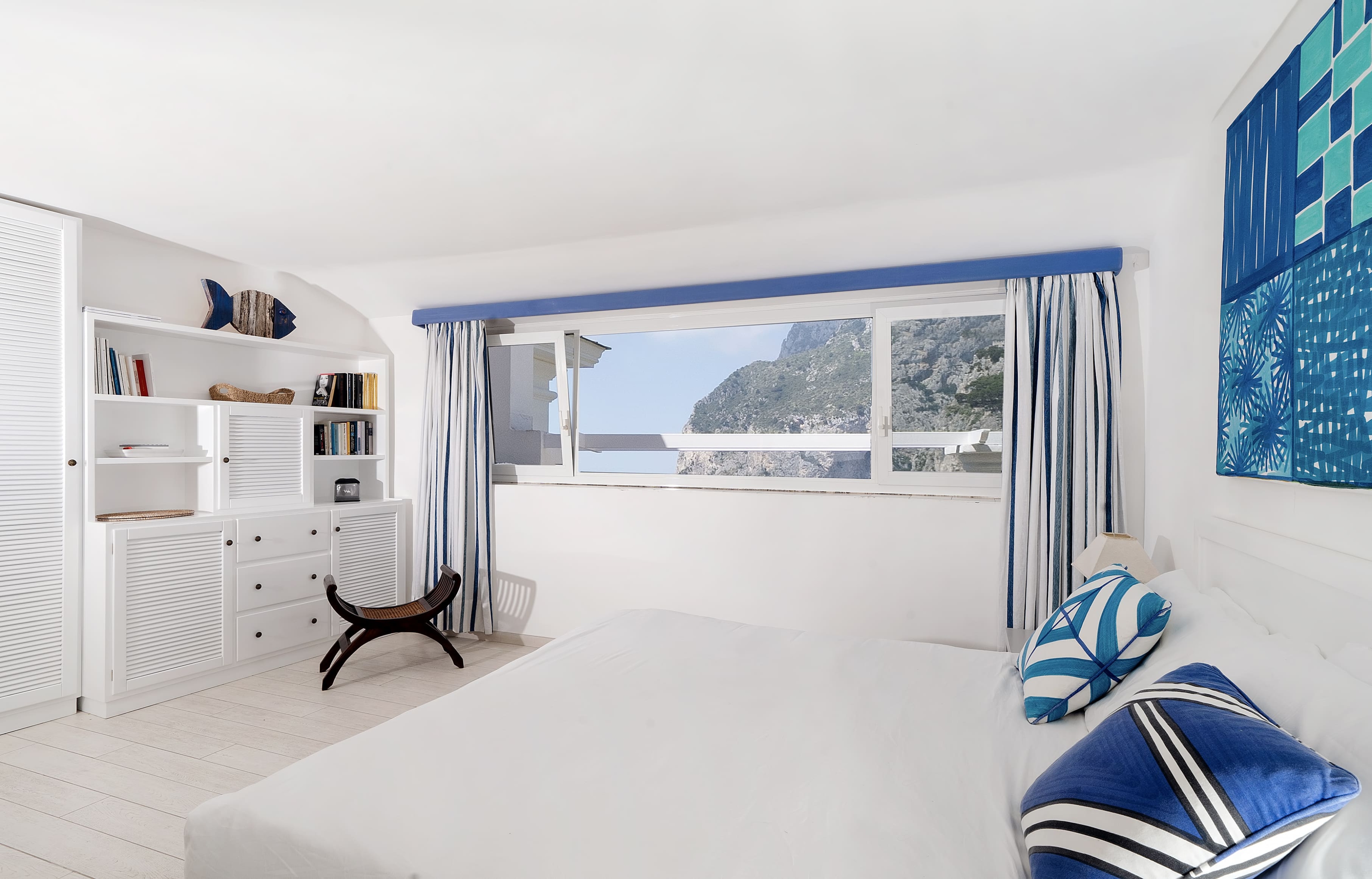 Dalla finestra si apre una splendida vista sulla baia di Marina Piccola, regalando scorci romantici in ogni momento della giornata.