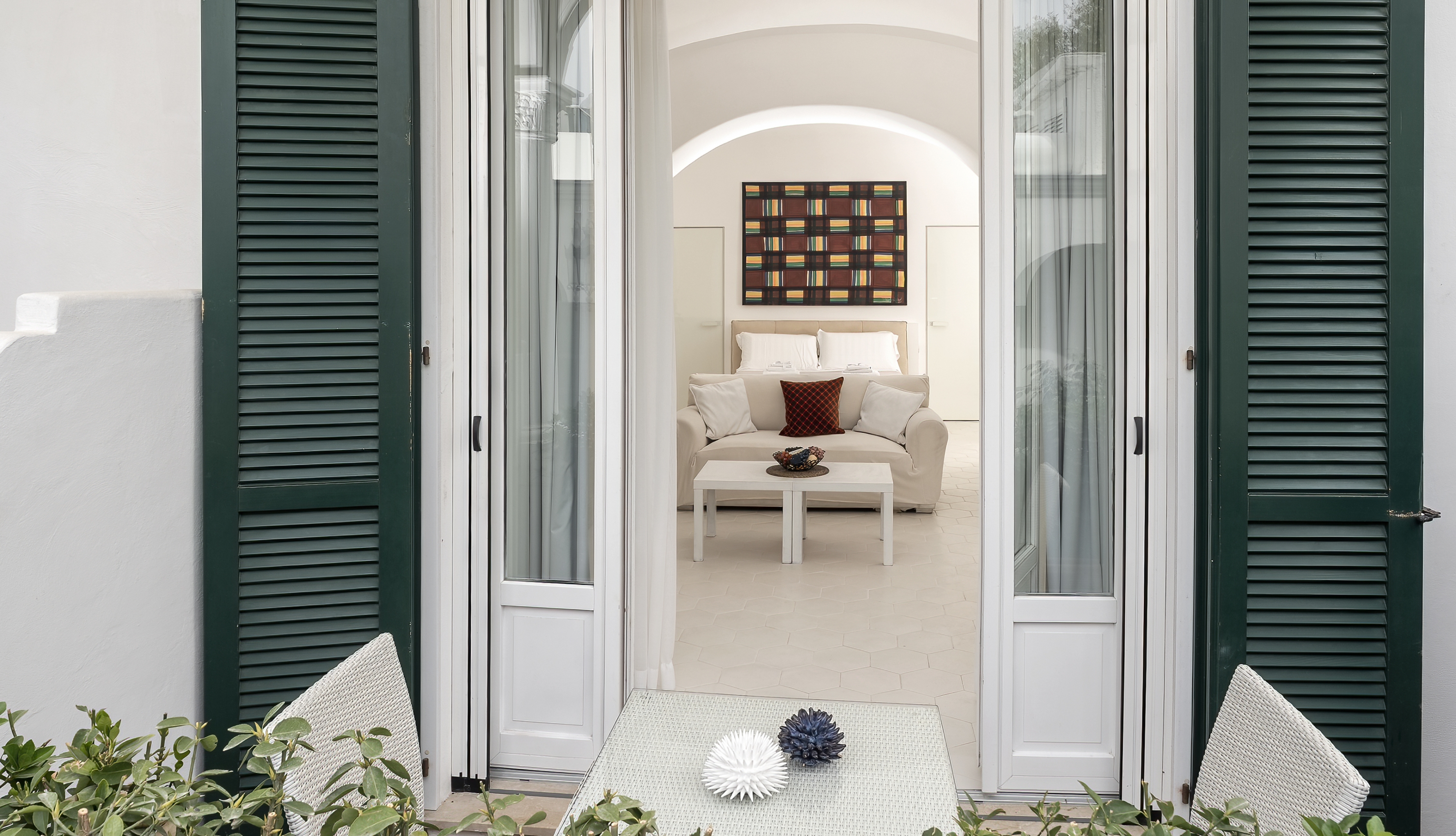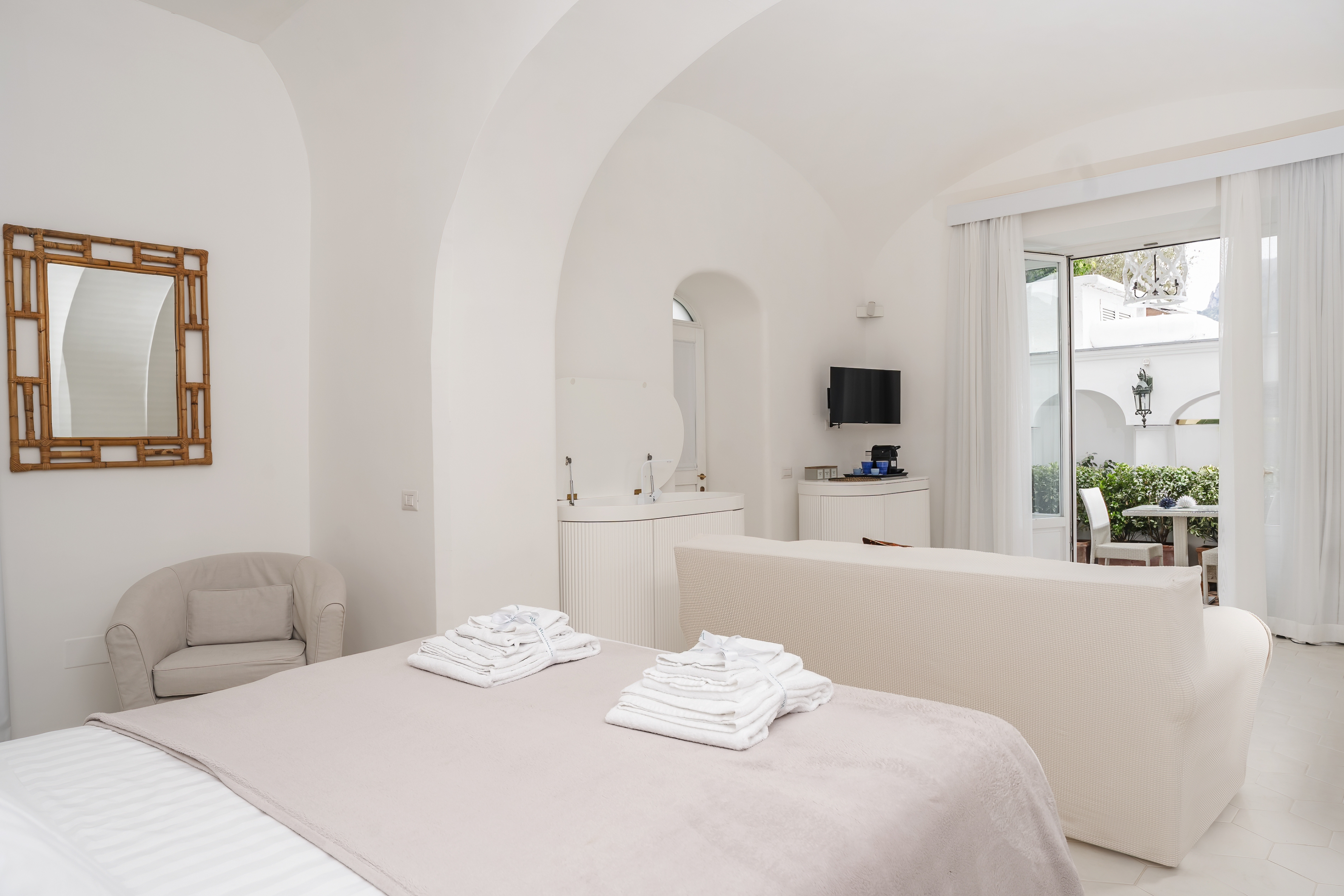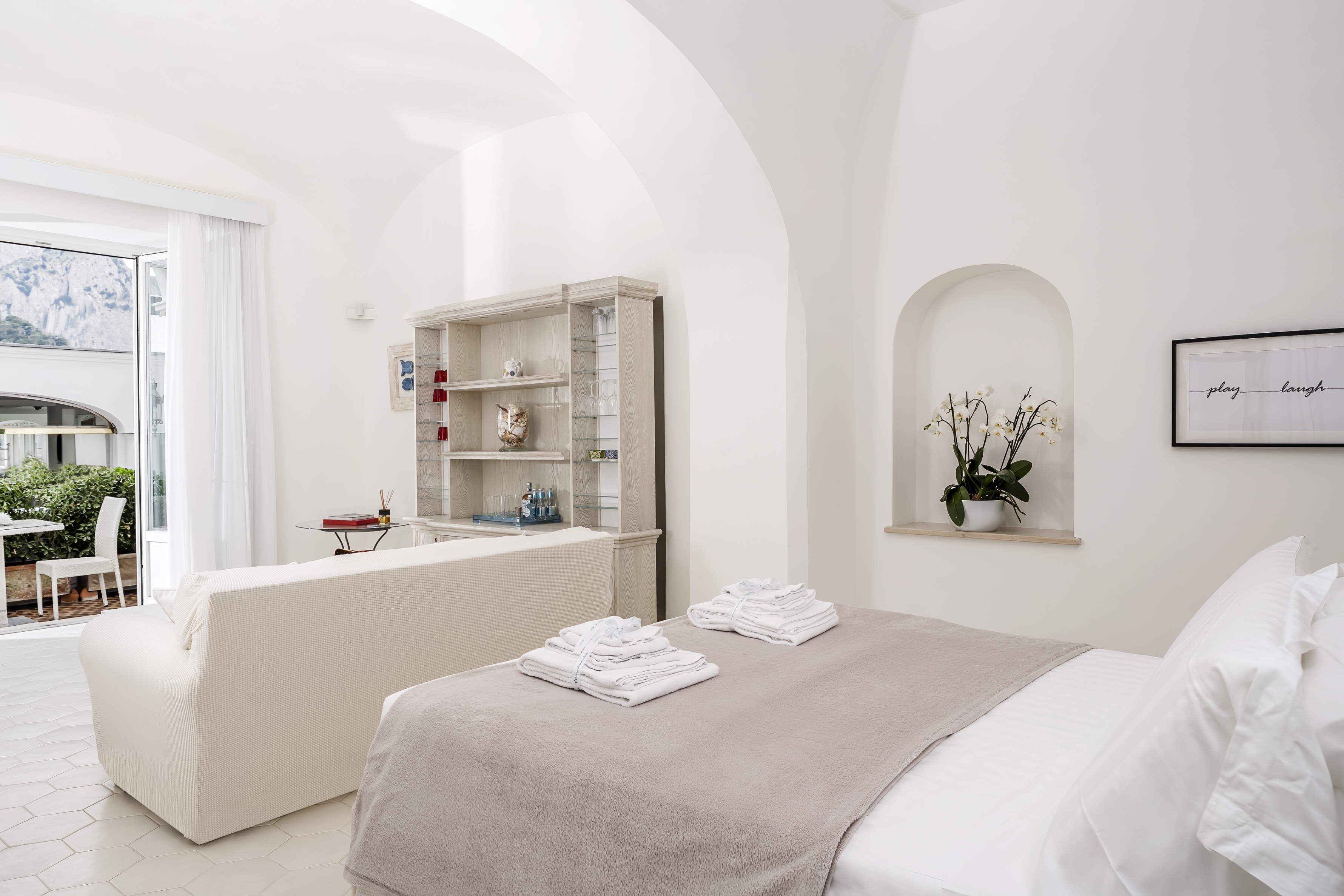 Flor è un ampio monolocale al piano terra, perfetto per due persone che desiderano immergersi nella vita vera di Capri con stile e comodità.