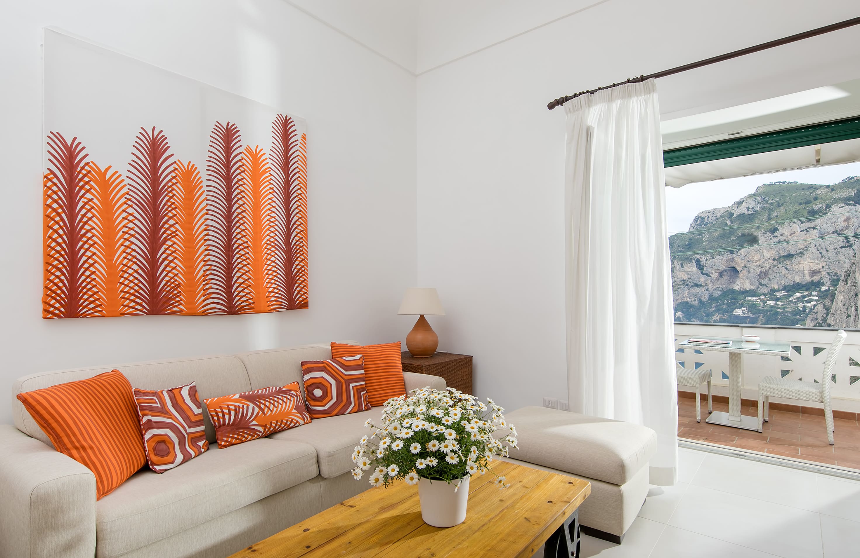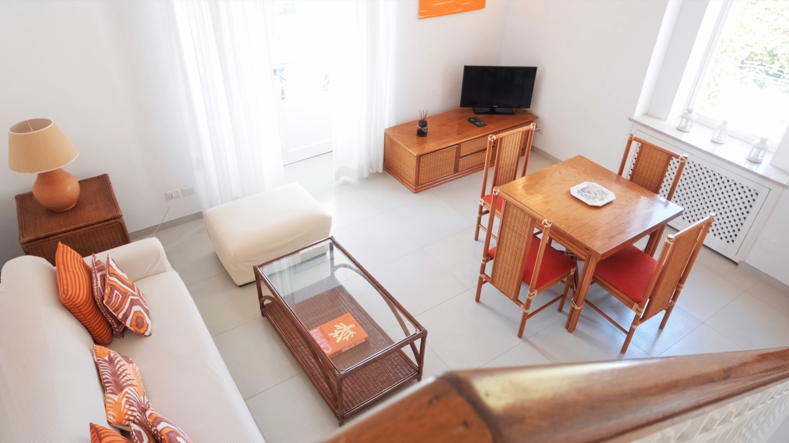 The choice of Mediterranean style, with wicker furnishings and majolica tile floors, gives the Bea apartment a warm and welcoming atmosphere. Combined with comforts such as air conditioning and heating, free Wi-Fi, and a flat-screen TV with satellite channels, your stay on the island of Capri will be exclusive and unforgettable.